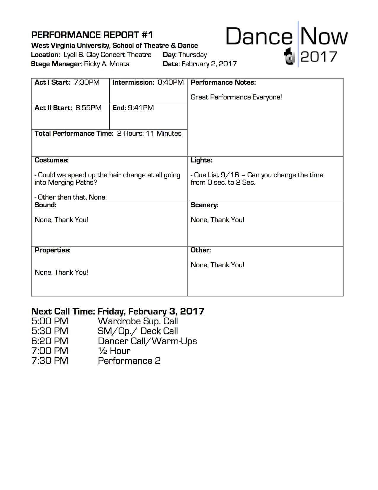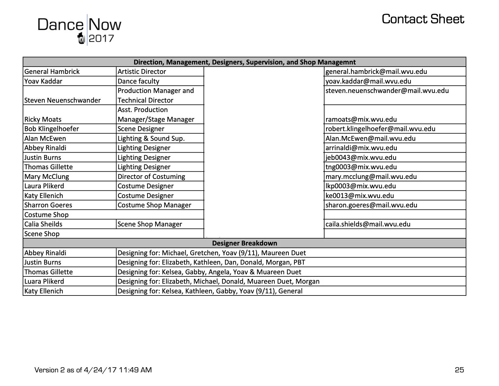Associate Production Manager and Production Stage Manager